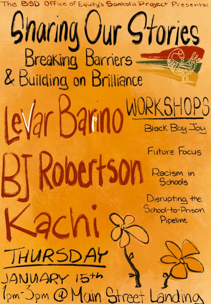 Thurs Jan 15th– Sharing Our Stories: Breaking Barriers & Building on Brilliance” Highlighting Black Male Excellence 1-3 pm @ Main Street Landing